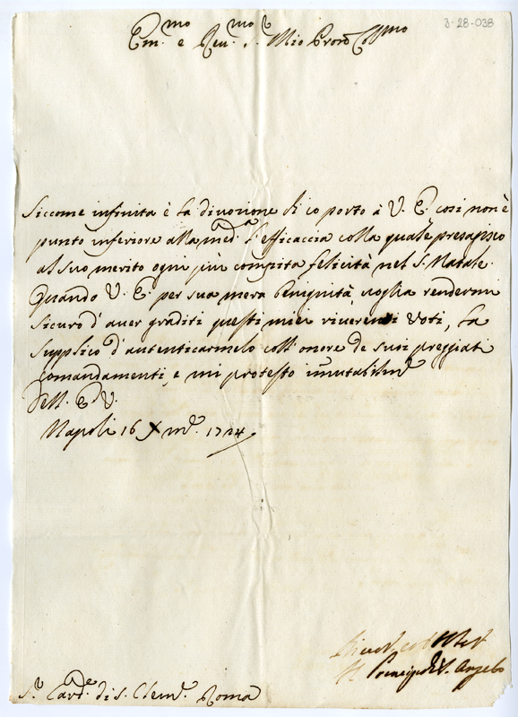 Lettera del principe di Sant'Angelo al cardinale Annibale Albani (1724 dicembre 16)
