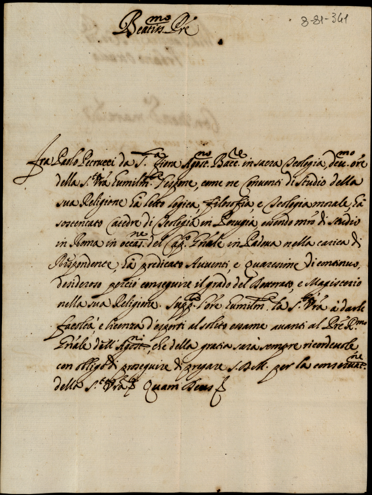 Memoriali diversi diretti al signor cardinale S. Onofrio