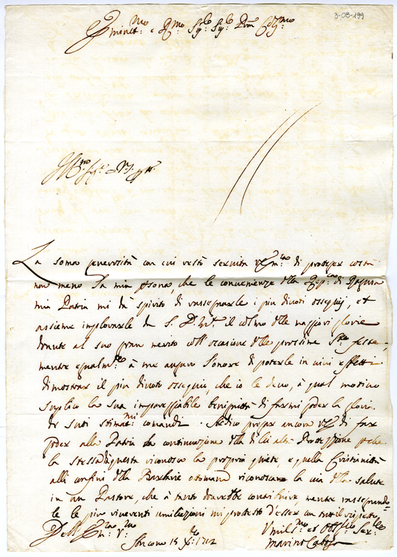 Lettera di Marino Caboga al cardinale Annibale Albani (1712 dicembre 15)