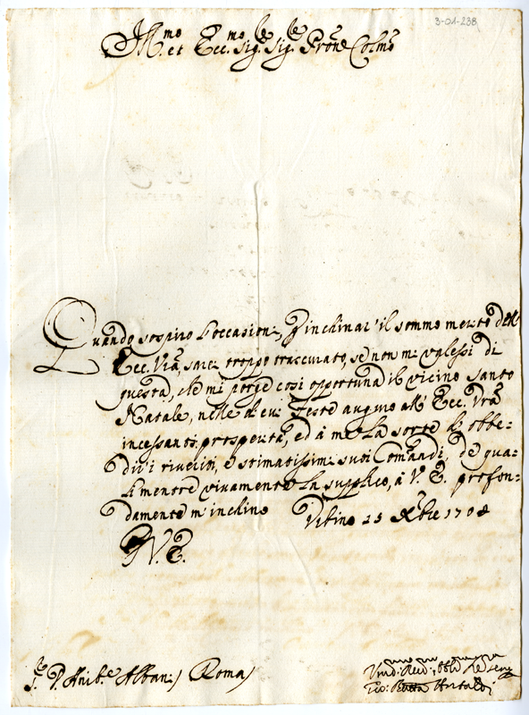 Lettera di Giovanni Battista Antaldi ad Annibale Albani (1704 dicembre 15)