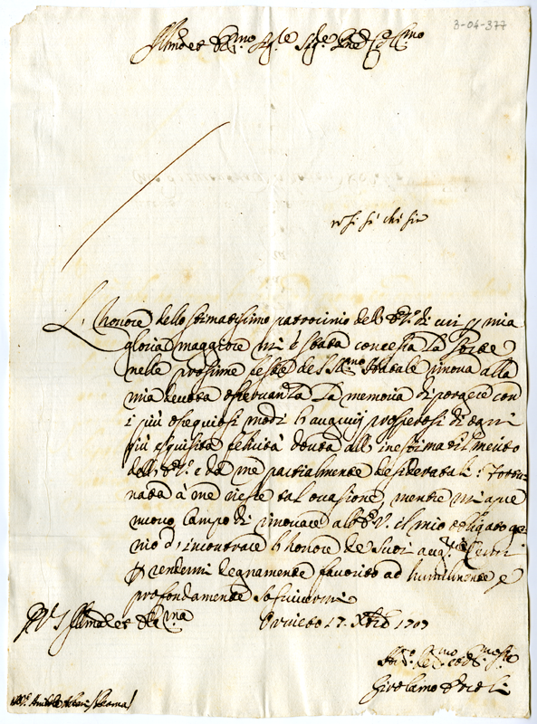 Lettera di Girolamo Ercoli ad Annibale Albani (1707 dicembre 17)