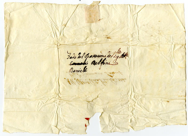 Lettera a monsignor Gianmaria Lancisi per la trasmissione della fede di battesimo del sig. Daniele Delfini
