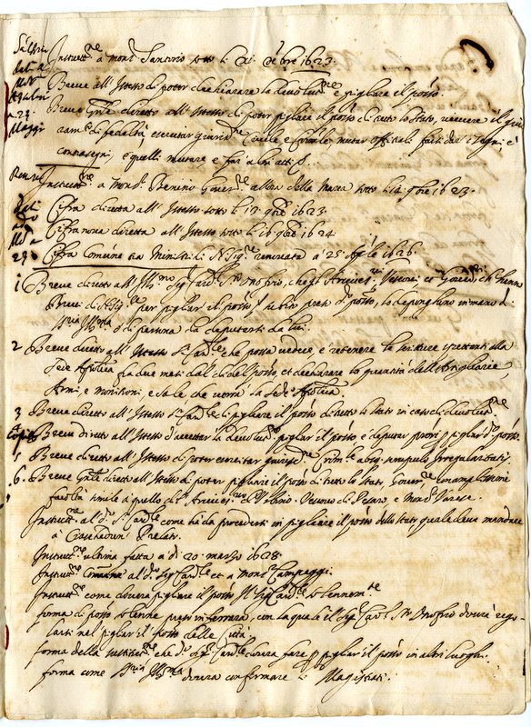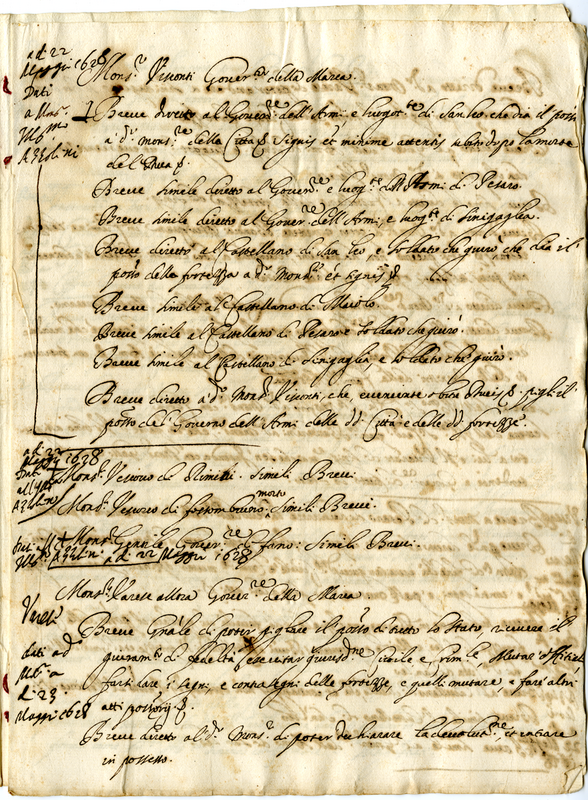 Elenco di brevi scritti in relazione alla devoluzione dello stato di Urbino allo Stato Pontificio.