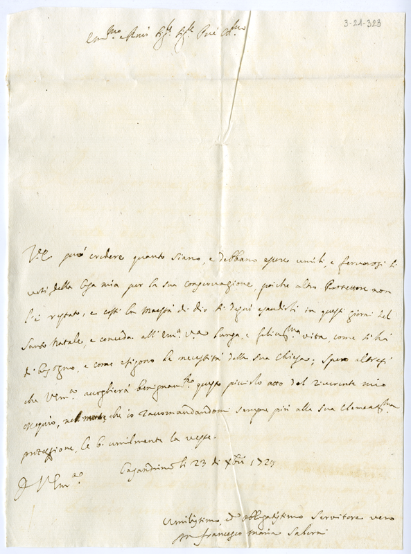 Lettera di Francesco Maria Salerni al cardinale Annibale Albani (1729 dicembre 23)