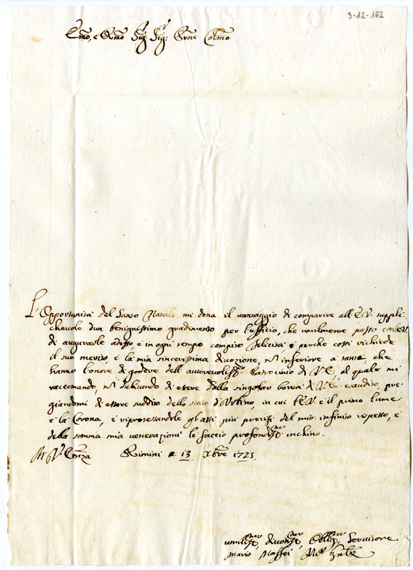 Lettera di Mario Maffei al cardinale Annibale Albani (1725 dicembre 13)