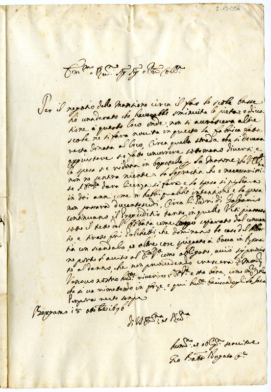 Lettera di Giovanni Battista Bugata a un cardinale (1696 ottobre 18)