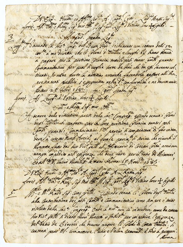 Concessione di poter imporre alcuni dazi da parte del Cardinale Gabrielli al Luogotenente di Urbino (1643-1683)