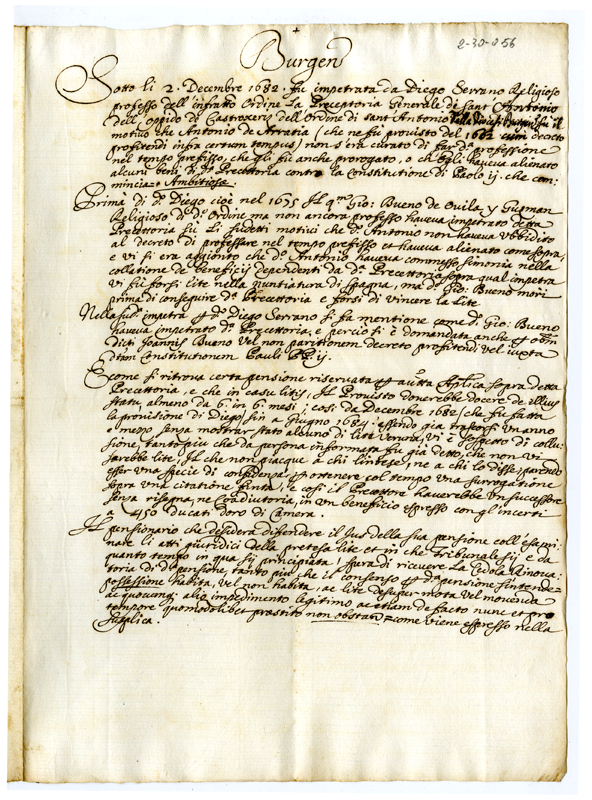 Difesa del legittimo possesso della precettoria generale di Sant'Antonio di Burgos da parte del religioso Diego Serrano