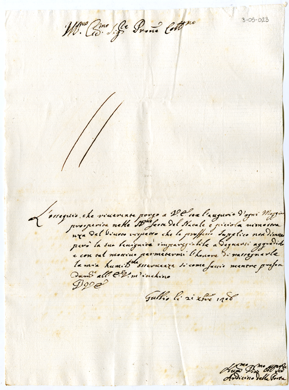 Lettera di Ardiciero della Porta ad Annibale Albani (1708 dicembre 21)
