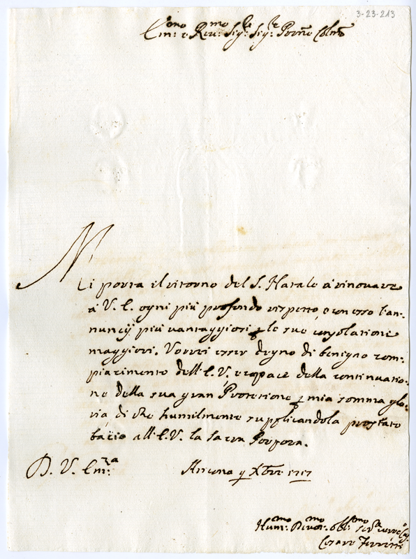 Lettera di Cesare Ferretti al cardinale Annibale Albani (1717 dicembre 9)