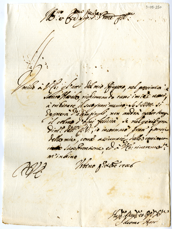 Lettera di Giacomo Rossi ad Annibale Albani (1708 dicembre 1)