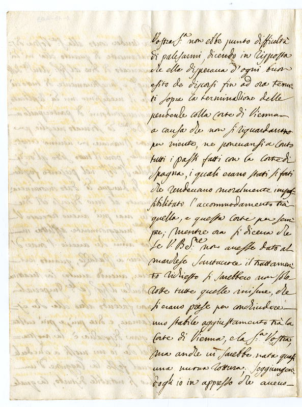 Colloquio avuto da Annibale Albani con l'ambasciatore Imperiale circa gli affari fra la corte romana e la corte di Vienna