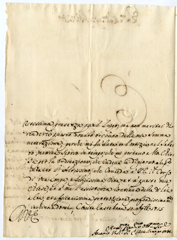 Lettera di Ascanio Vescovo di Civita Castellana e Orte al Cardinale Annibale Albani (1715 aprile 10)