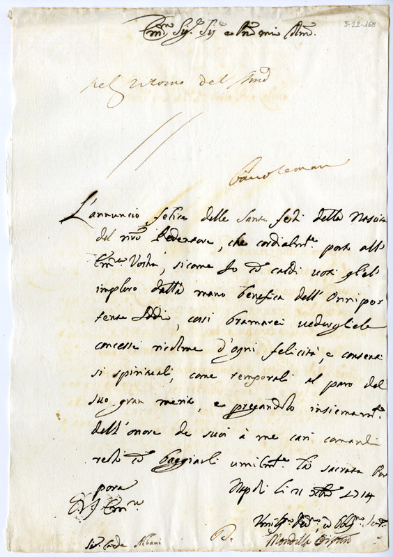 Lettera di Mondilla Orsino al cardinale Annibale Albani (1714 dicembre 21)