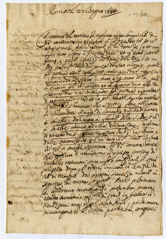 Minuta di lettera del cardinale Barberini Francesco a Malatesta Albani (1644 giugno 27)