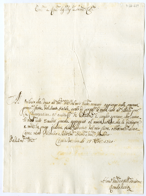 Lettera di Romolo Pucitta al cardinale Annibale Albani (1720 dicembre 18)