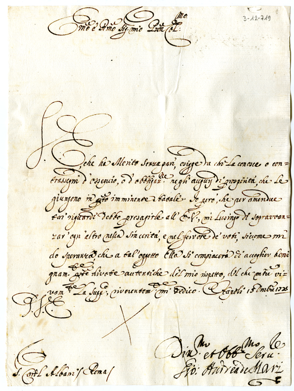Lettera di Giovanni Andrea de Mari al cardinale Annibale Albani (1725 dicembre 15)