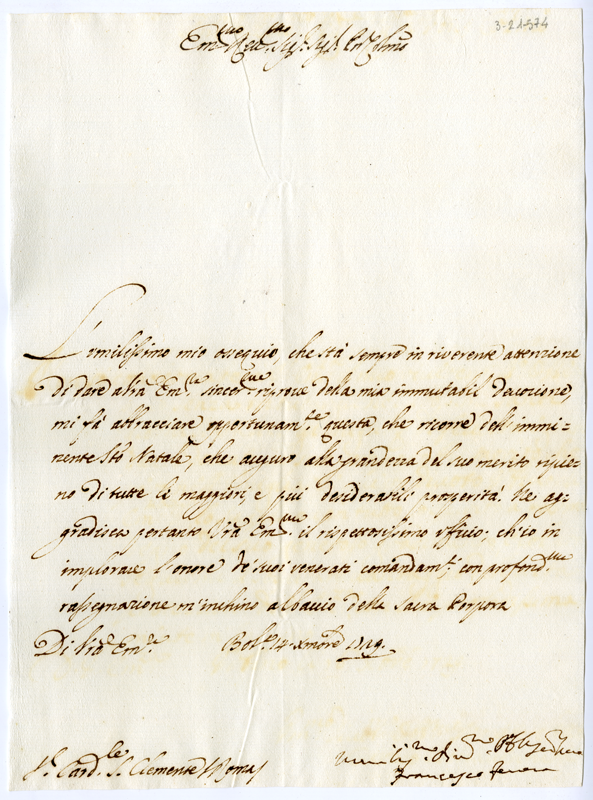 Lettera di Francesco Ferrara al cardinale Annibale Albani (1729 dicembre 14)