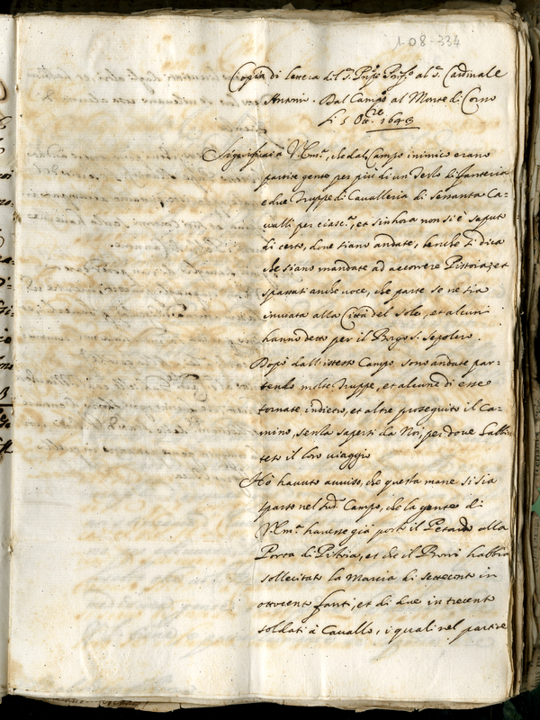 Copia di lettera del signor principe prefetto al cardinale Barberini Antonio seniore (1643 ottobre 5)