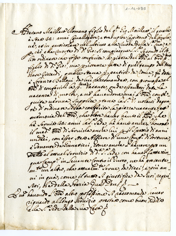 Supplica di Alderano Maillaca a Clemente XI