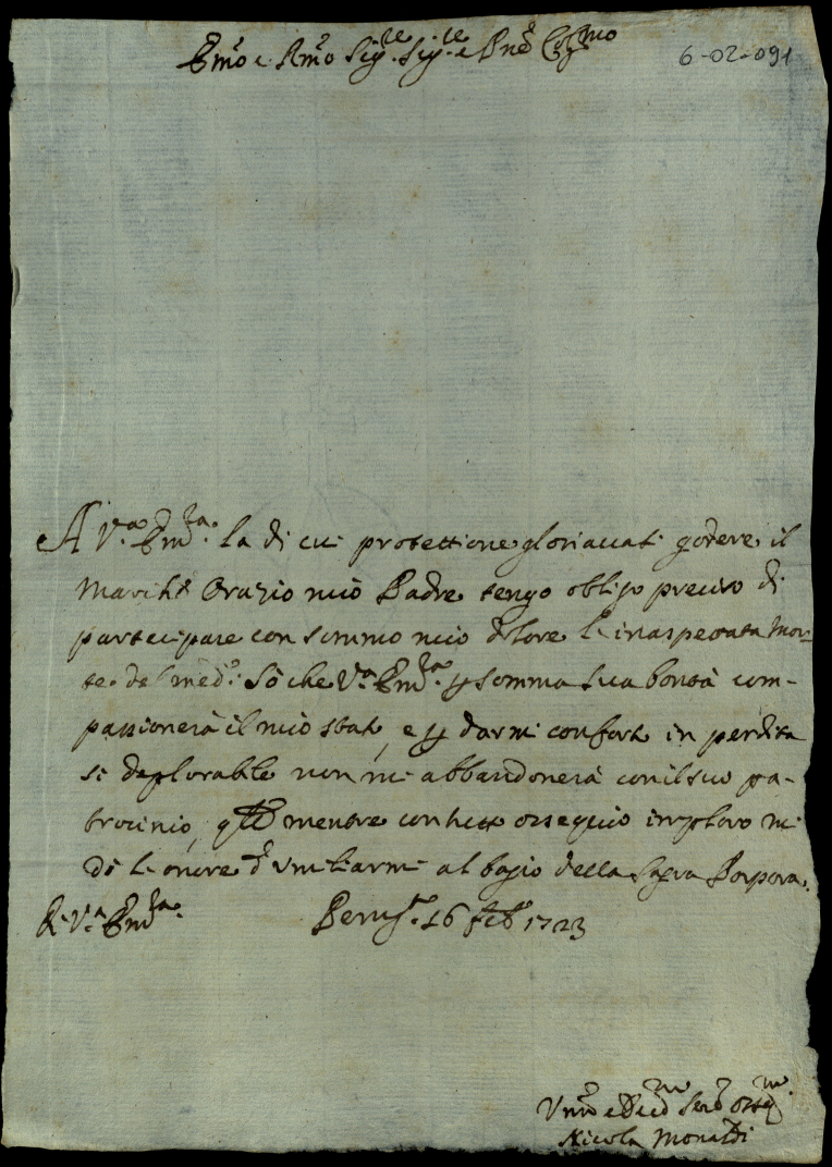 Lettere di complimento e di negozio. 1723. Semestre primo
