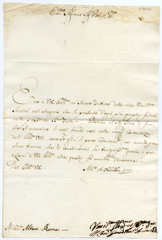 Lettera del cavaliere Guid'Antonio Arcimboldi al cardinale Annibale Albani (1717 dicembre 16)