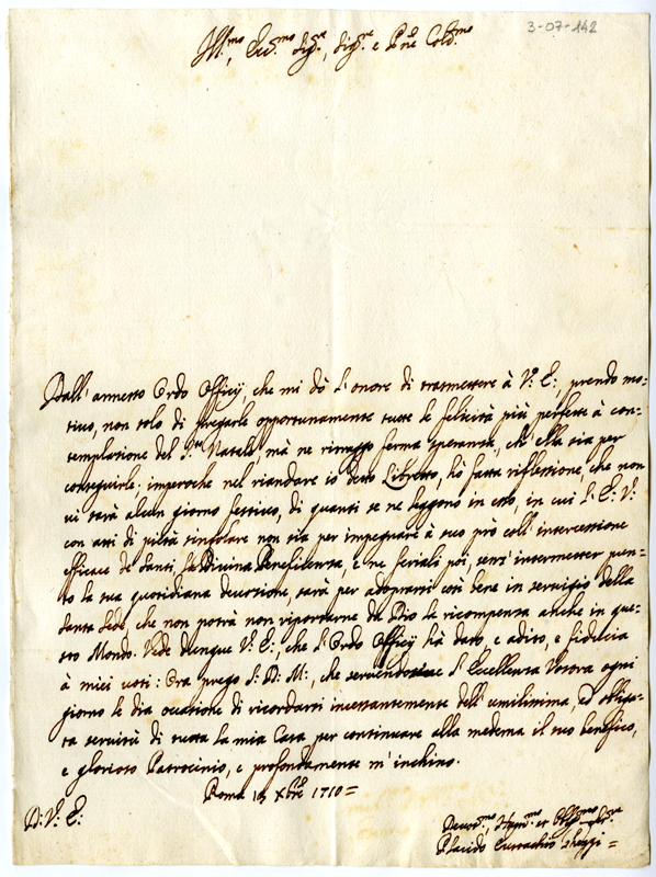 Lettera di Placido Eustachio Gheggi ad Annibale Albani (1710 dicembre 13)