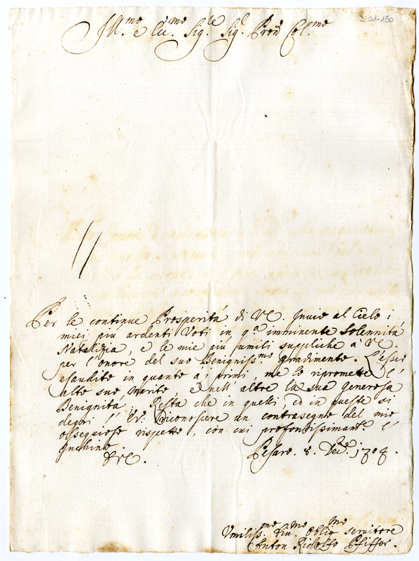 Lettera di Anton Ridolfo Pfiffer ad Annibale Albani (1704 dicembre 8)
