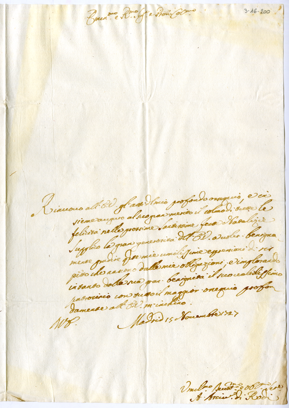 Lettera di Alessandro arcivescovo di Rodi al cardinale Annibale Albani (1727 dicembre 15)