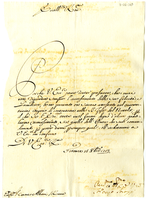 Lettera di Lorenzo Strozzi ad Annibale Albani (1705 dicembre 15)