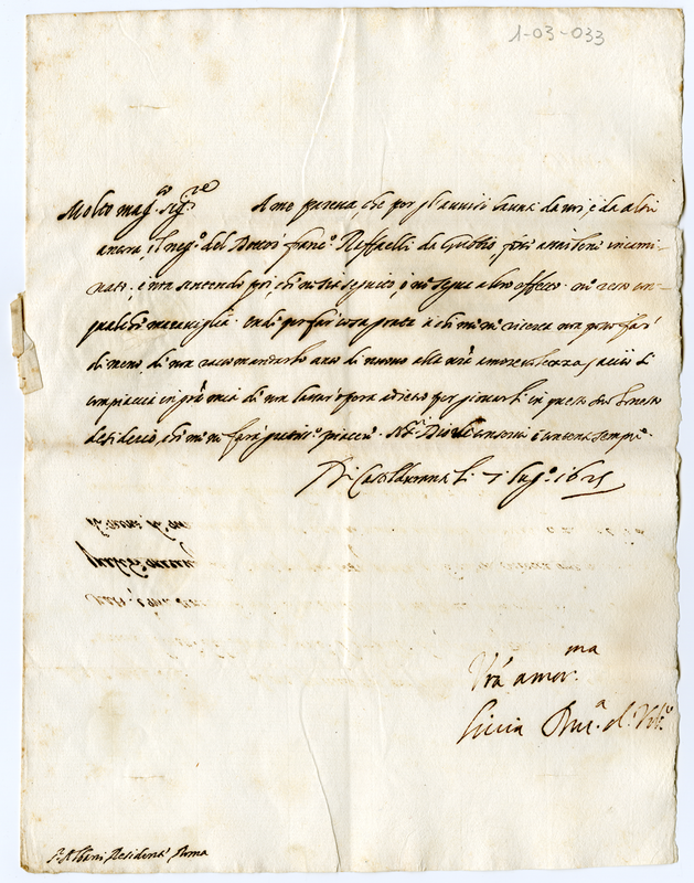 Livia Della Rovere, duchessa di Urbino, raccomanda ancora ad Orazio Albani il dottor Francesco Raffaelli di Gubbio perchè ottenga quanto già richiesto.