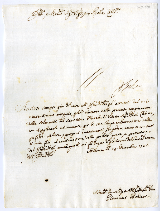 Lettera di Giovanni Bosdari al cardinale Annibale Albani (1721 dicembre 14)