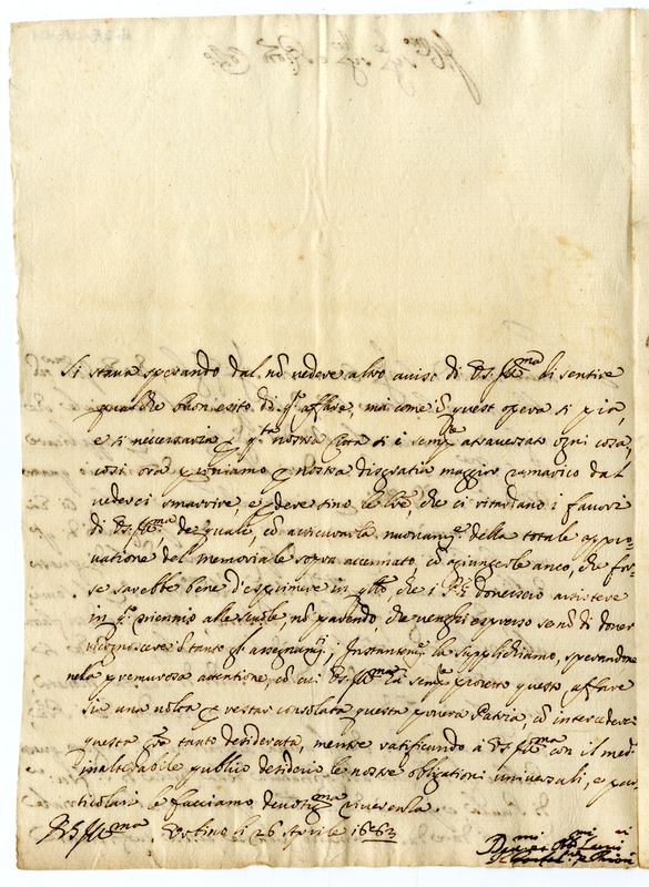 Lettera del Gonfaloniere e Priori di Urbino a Illustrissimo Signore (1683 aprile 26)