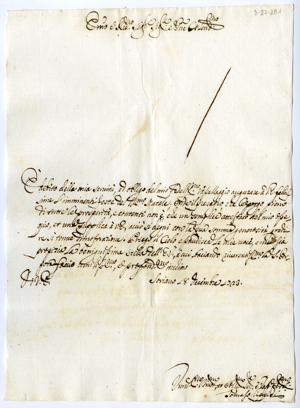 Lettera di Tommaso Lippici al cardinale Annibale Albani (1723 dicembre 18)