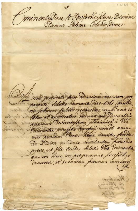 Lettera di Cristoforo Giovanni Szembek al cardinale Annibale Albani (1729 dicembre 1)