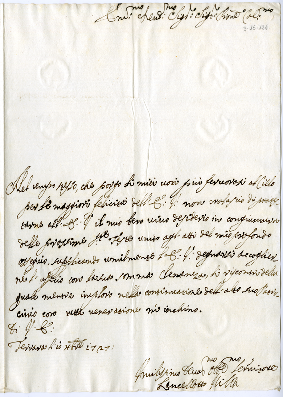 Lettera di Lancellotto Villa al cardinale Annibale Albani (1727 dicembre 10)