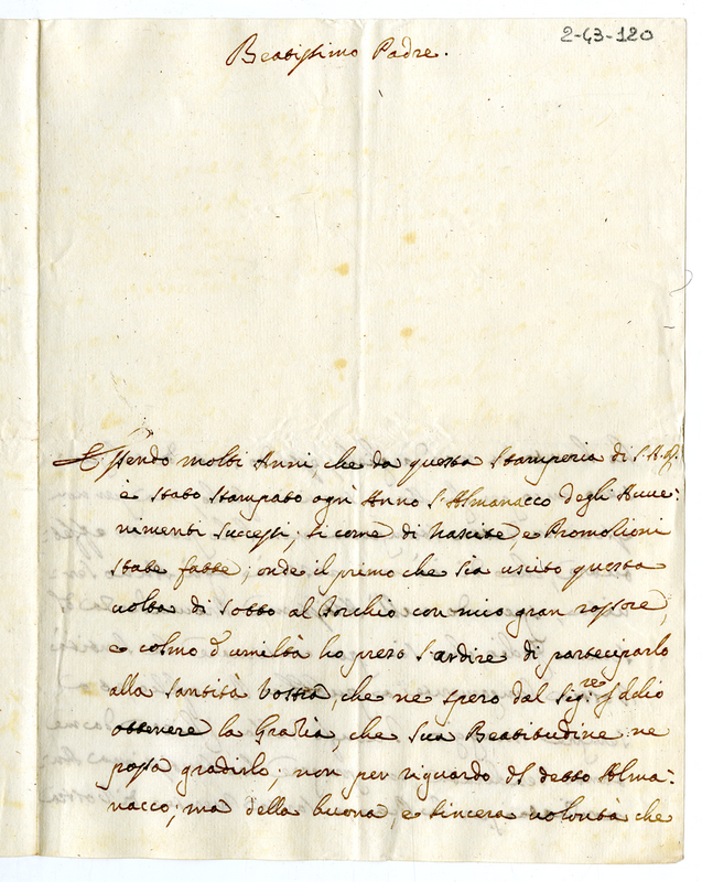 Lettera di Giuseppe Branchi a papa Clemente XI (1718 dicembre 20)