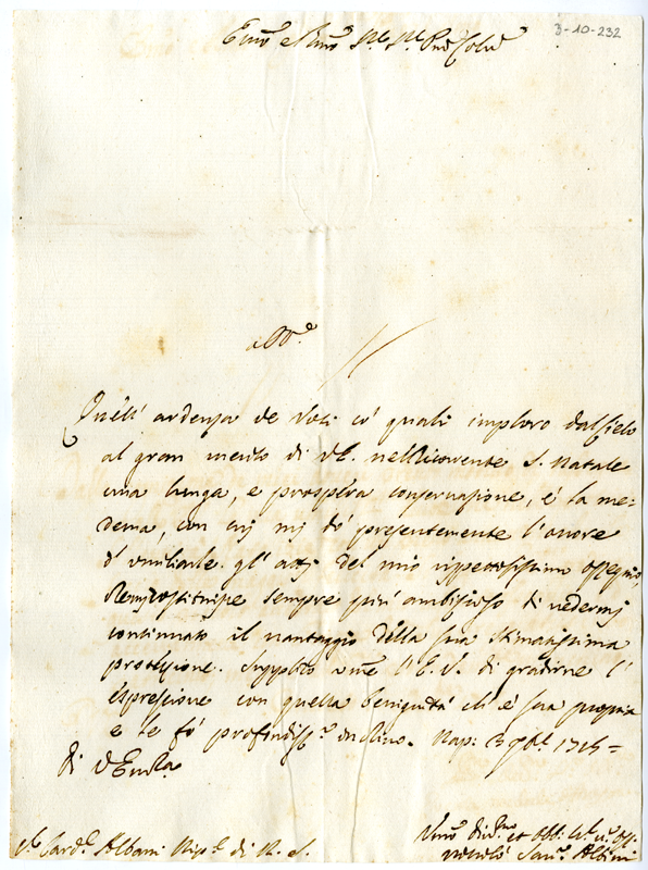 Lettera di Niccolò Saverio Albini al cardinale Annibale Albani (1715 dicembre 3)