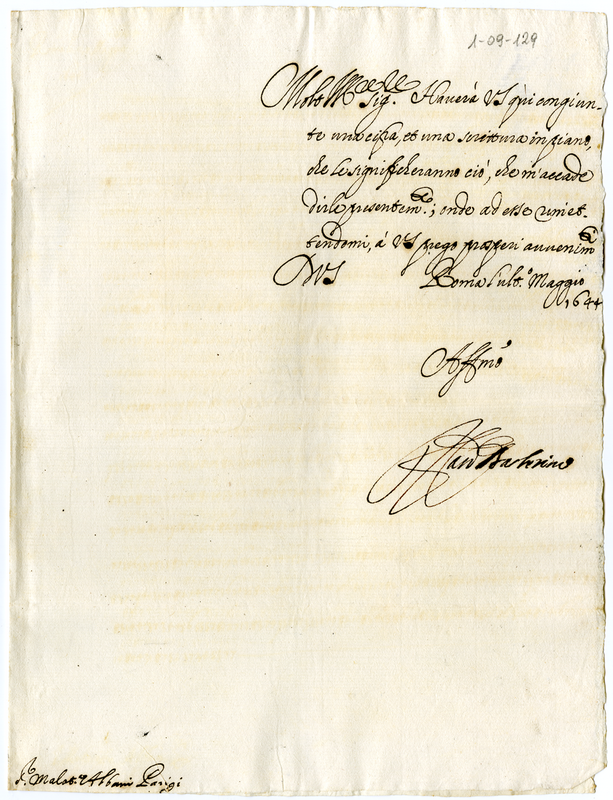 Lettera del cardinale Barberini Francesco senior a Malatesta Albani (1644 maggio 31)