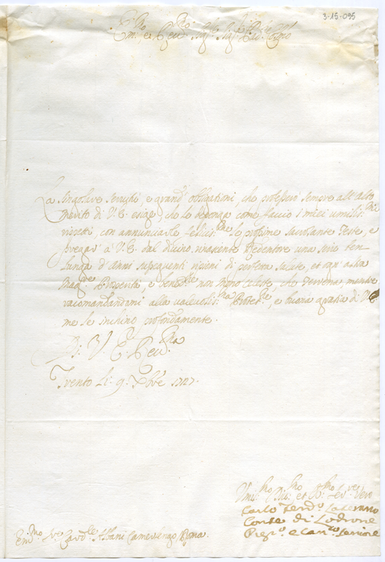 Lettera di Carlo Ferdinando Laterano conte di Lodrone al cardinale Annibale Albani (1727 dicembre 9)
