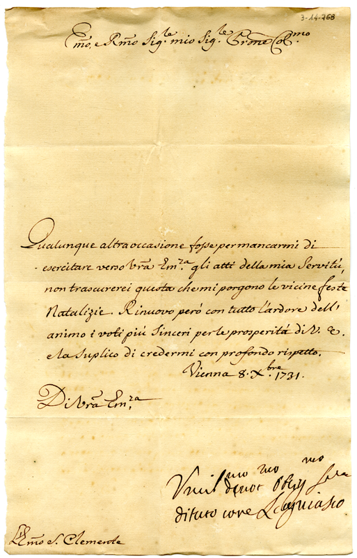 Lettera di Scagniasco al cardinale Annibale Albani (1731 dicembre 8)