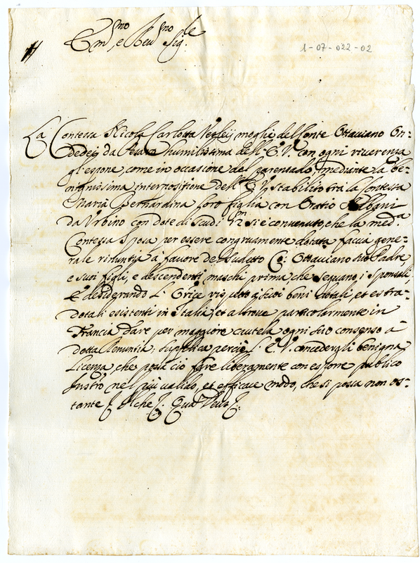 Nicola Carlotta Vesleij chiede al cardinale legato di poter esprimere in forma valida ed efficace il suo consenso alla rinuncia ai beni materni da parte della figlia