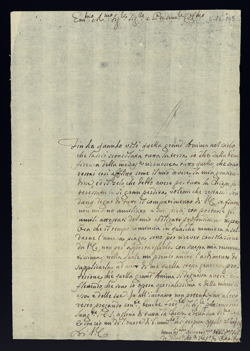 Lettere di condoglianza per la morte di Papa Clemente XI di gloriosa memoria