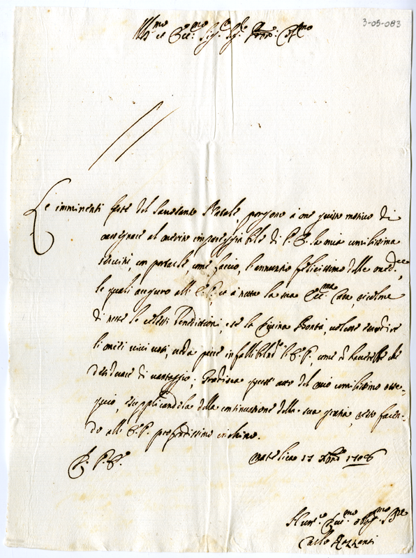 Lettera di Carlo Razzanti ad Annibale Albani (1708 dicembre 17)