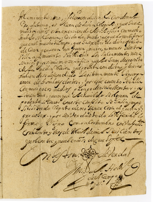 Attestato del notaio apostolico don Moguel Hortez del Campo a favore di Matteo De Salazar