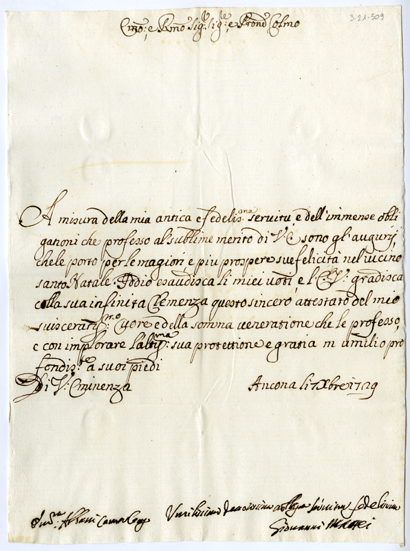Lettera di Giovanni Mattei al cardinale Annibale Albani (1729 dicembre 7)