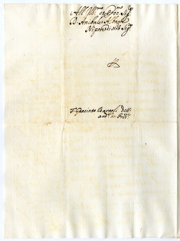 Lettera di fra Giacinto Bartoli ad Annibale Albani (1700-1721)