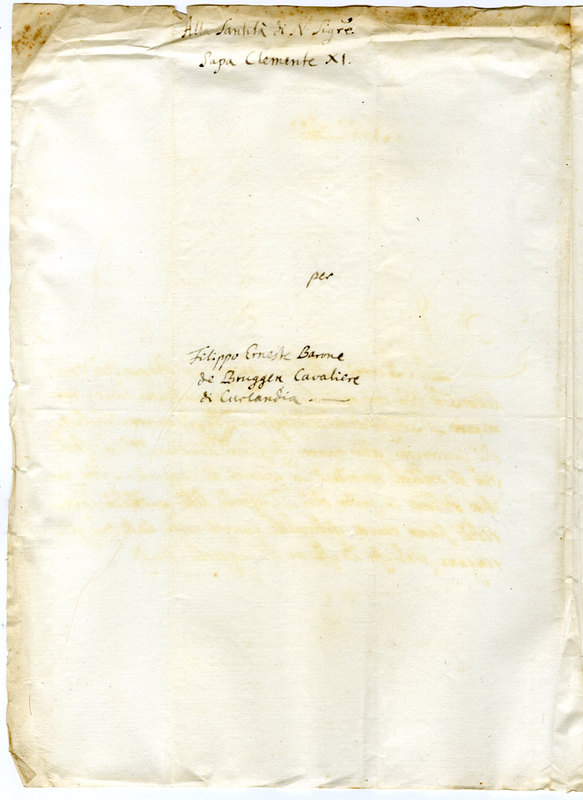 Lettera di Filippo Erneste barone de Bruggen di Curlandia a papa Clemente XI (1700-1721)