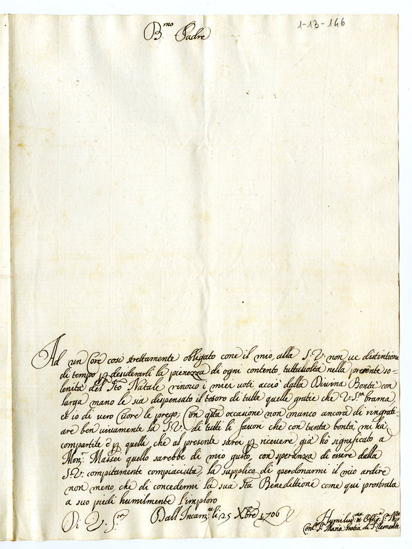 Lettera di Maria Grazia di San Clemente a papa Clemente XI (1706 dicembre 25)