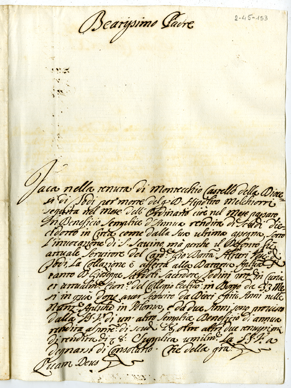 Lettera di don Giuseppe Sardoli a papa Clemente XI (1700-1721)